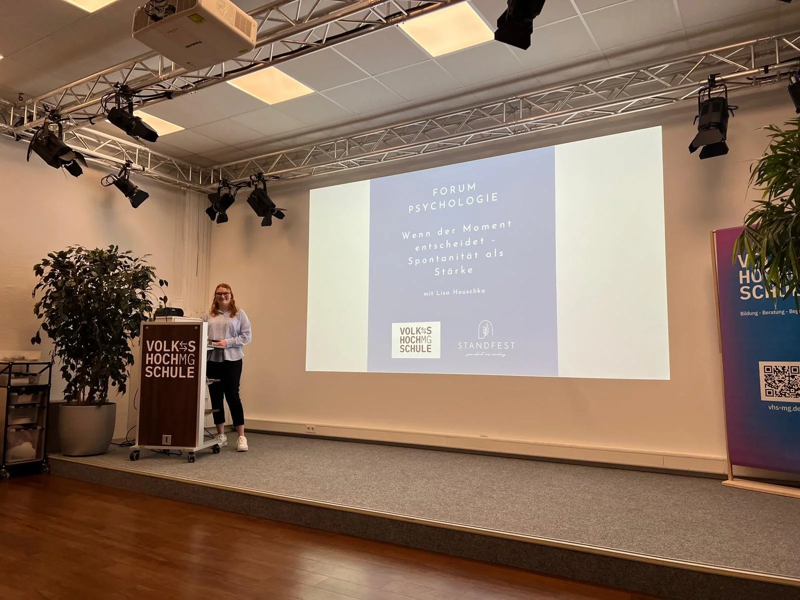 „Der VHS-Kurs “Spontanität als Stärke" war mega. Sehr beeindruckend. Eine so junge Referentin und schon so viel erlebt in einem Auslandsjahr allein und sehr weit weg von zu Hause. Ich ziehe den Hut vor so viel Mut und die Begabung diese Themen so toll zu vermitteln. Mega Seminar, ich habe sehr viel mitgenommen! Herzlichen Dank“